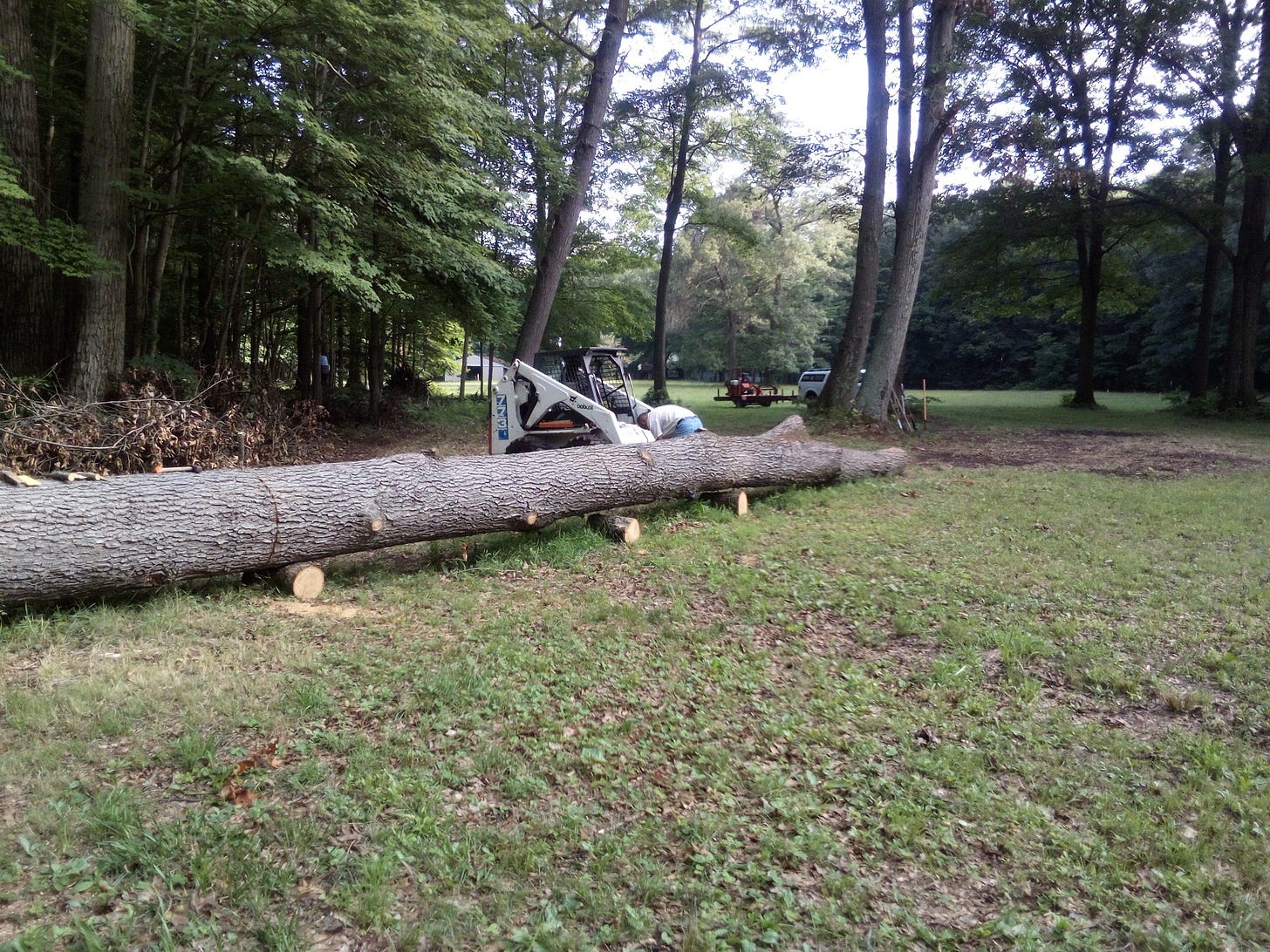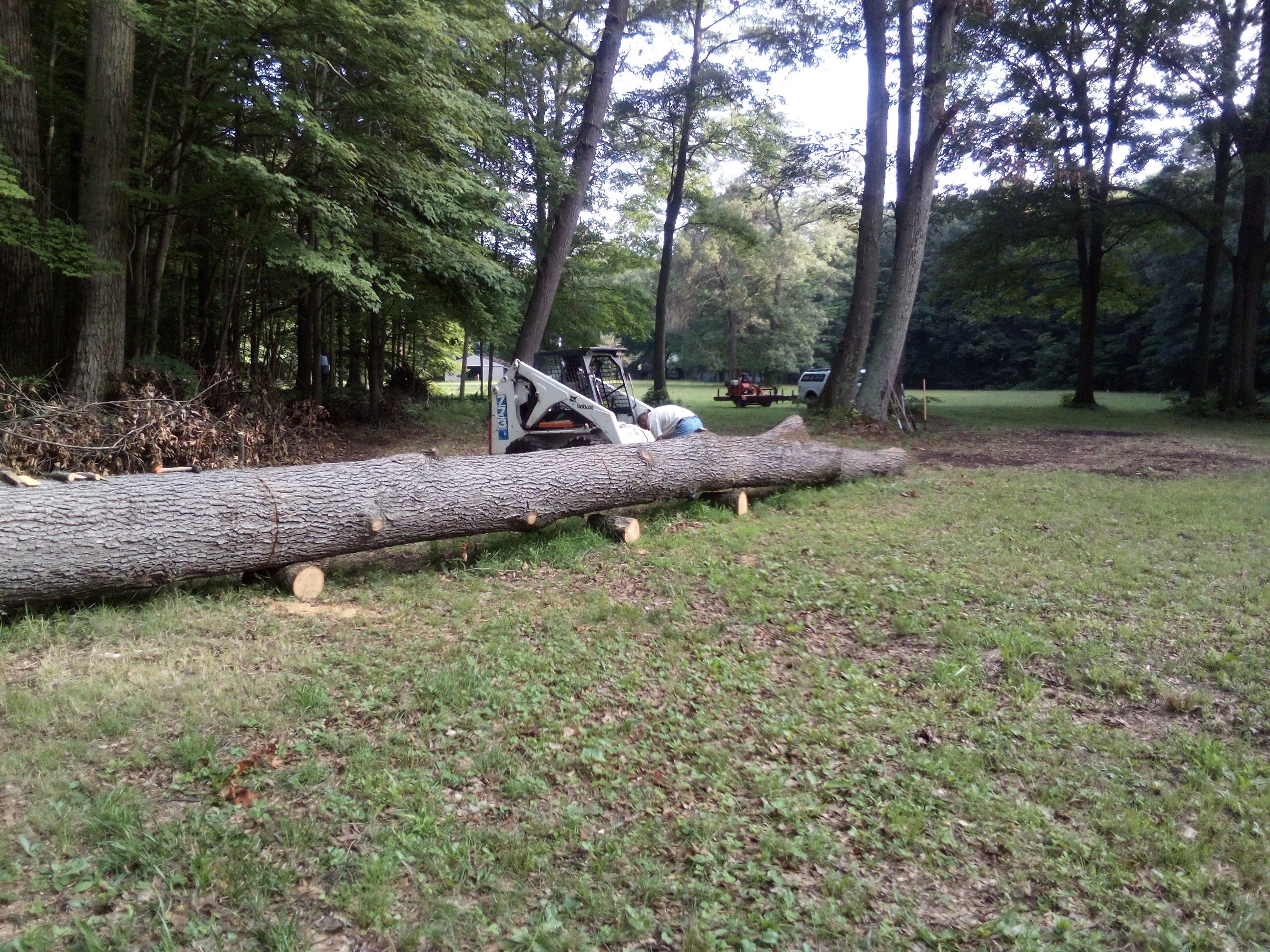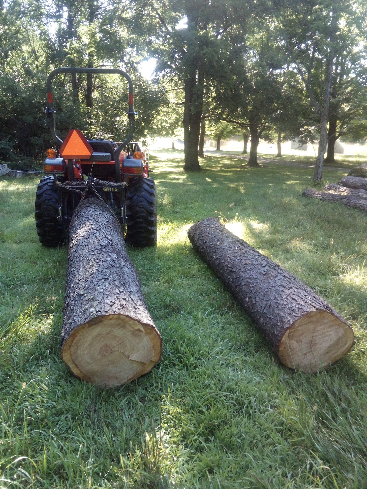 One, big Red Oak, about 32” in diameter a couple of feet above the ground. Leonard cut three 12 ft. logs, with the smallest end at 24”.