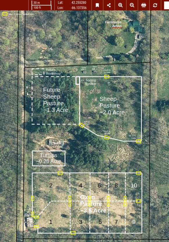 The Oxen have access to Paddocks #4 and 2; looking good.