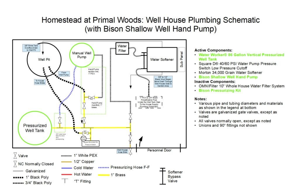 So there you have it, as installed. Clockwise from left in the image: Pressurized Well Tank and Well Tank Manifold, Bison Shallow Well Hand Pump and pressurizing hose, Whole House Filter, and Water Softener. Works fine, lasts a long time. If you have any questions or comments, please leave them for me, I appreciate it.